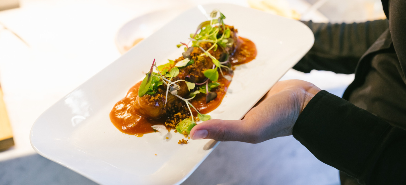 Das Herzstück bildet die offene Küche. Hier können unsere Gäste das Kochgeschehen hautnah miterleben und den Köchen über die Schulter schauen – ein echtes Markthallen-Erlebnis mitten in Mönchengladbach.