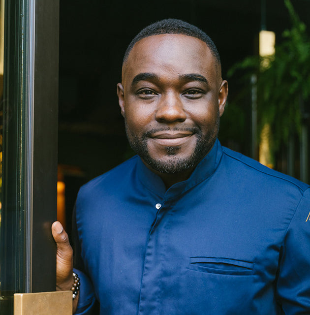 Der charismatische Koch mit ghanaischen Wurzeln ist in Stuttgart aufgewachsen, kochte vom Schwabenländle bis nach Sylt in hochkarätigen Restaurants und führt nun sein eigenes Restaurant im Ruhrgebiet.
